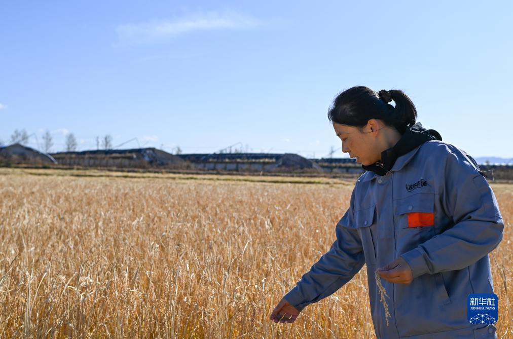 10月20日,劉春艷在琿春市三家子滿族鄉東崗子村的水稻田裏查看水稻長勢。
