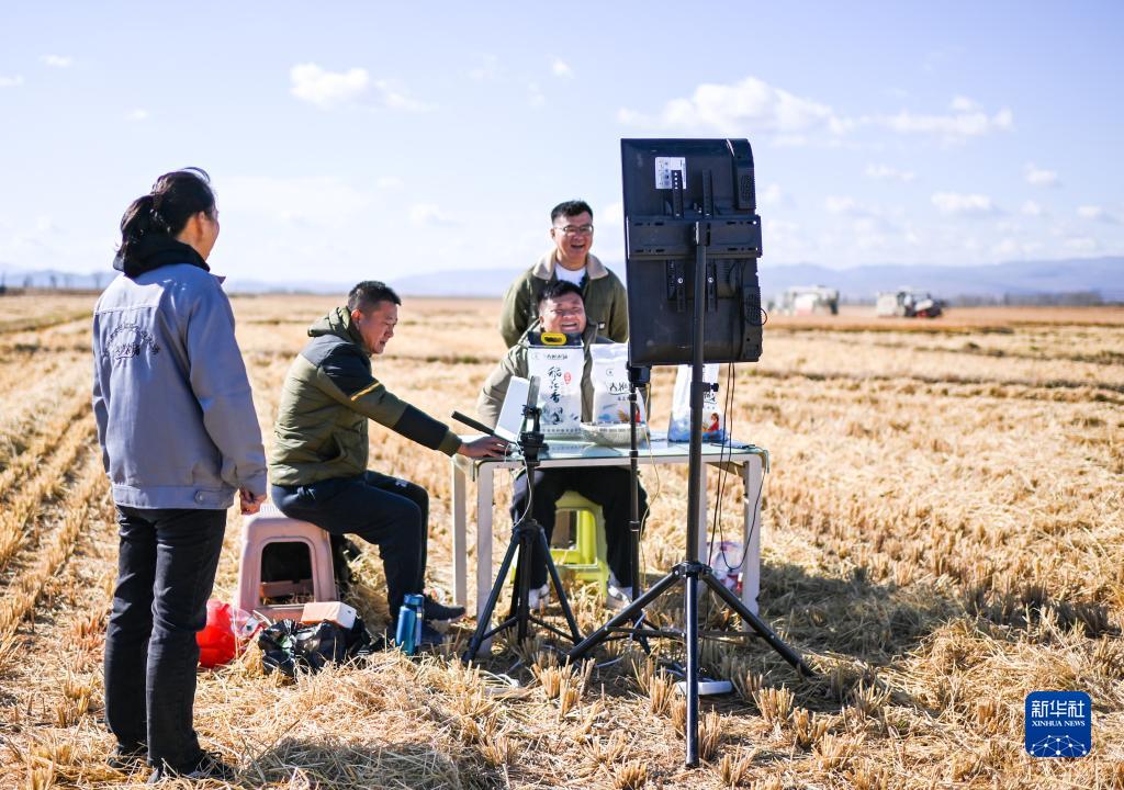 金秋十月,吉林省迎來水稻收穫季節。在吉林省延邊朝鮮族自治州琿春市三家子滿族鄉東崗子村,“80”後巾幗“新農人”劉春艷在稻穀飄香的田野上駕駛着水稻收割機,在她身後,幾個電商主播將劉春艷剛剛收割好的水稻通過網絡賣向全國。