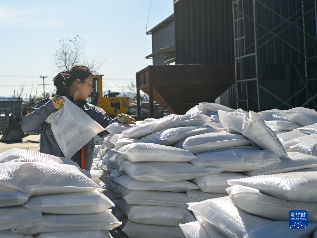 10月20日,劉春艷在她的現代化米業加工廠搬運即將發往全國的大米。