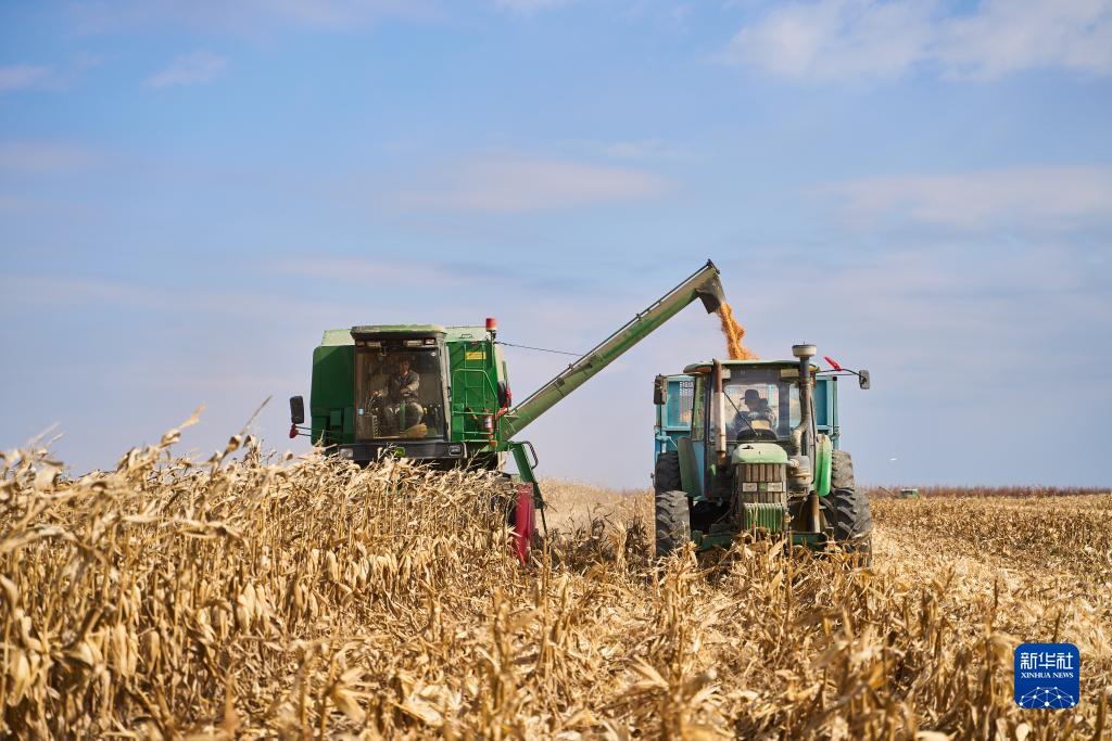 10月22日,在俄羅斯遠東城市烏蘇裏斯克,農民操縱農機收割玉米。