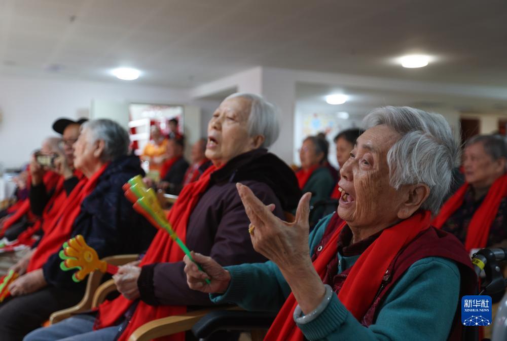 10月22日,在金煦福武侯萬壽頤養中心,老人們在西南交通大學數學學院青年志願者的帶領下唱歌。