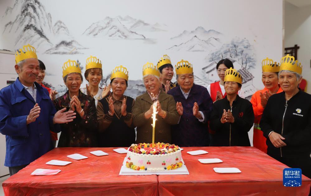 10月22日,浙江省台州市路橋區路北街道的黨員志願者在銘泰社區為老人們過集體生日。