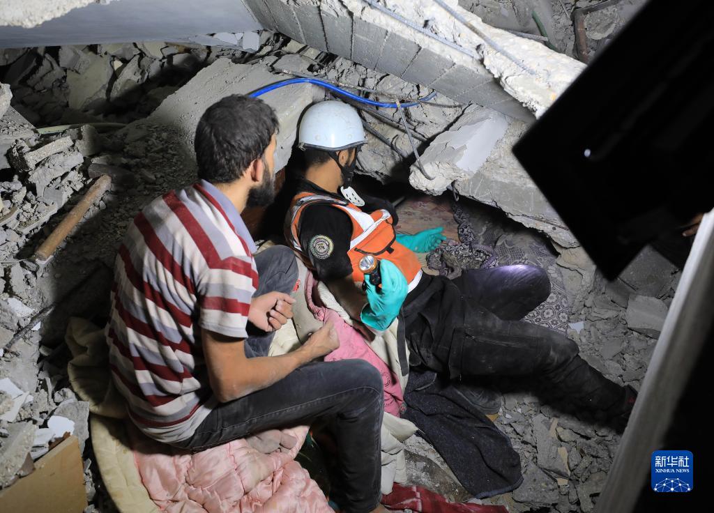 10月22日,在加沙城,人們在遭以色列襲擊損毀的建築中實施救援。