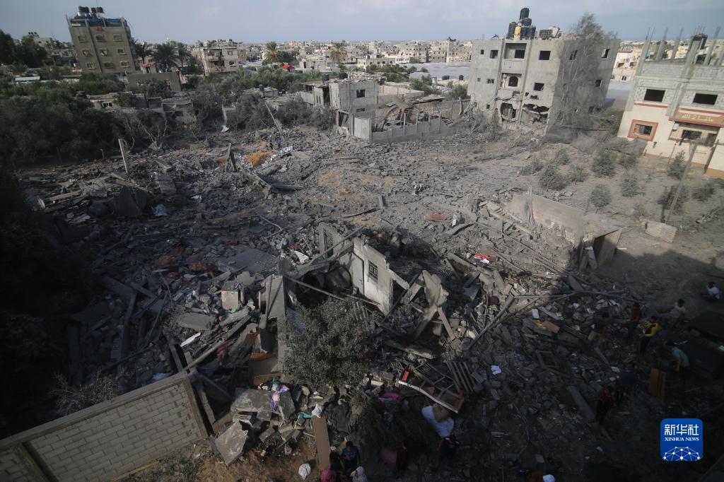 這是10月22日在加沙地帶南部城市汗尤尼斯拍攝的建築廢墟。