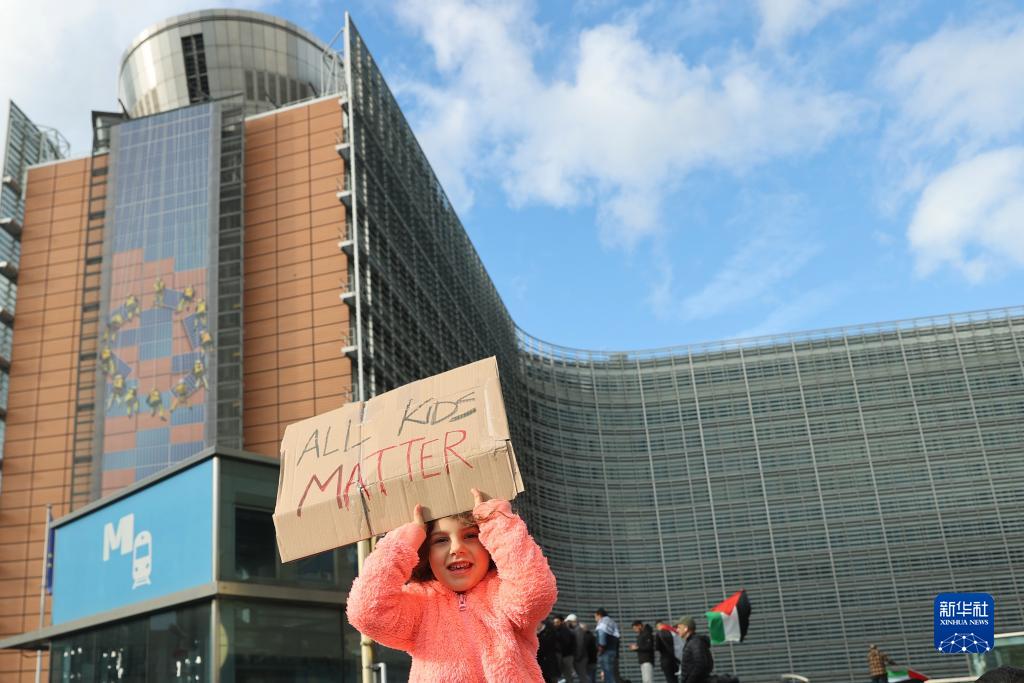 10月22日,在位於比利時布魯塞爾的歐盟總部附近,一名女孩手舉“所有孩子都重要”的標語參加集會。