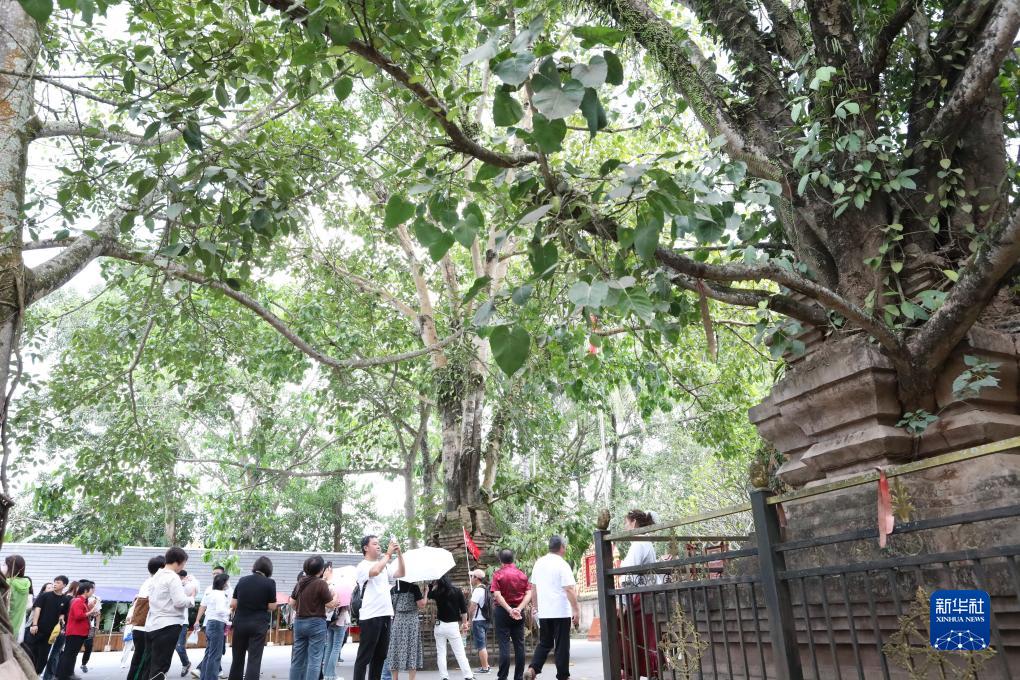 10月18日,游客在雲南省景洪市動罕鎮曼聽村參觀古榕樹。