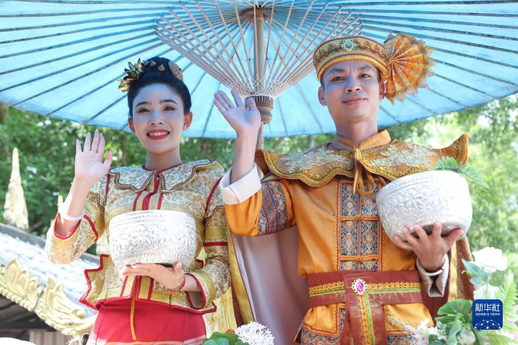 10月18日,雲南省景洪市動罕鎮曼聽村傣族姑娘依金開(左)與同伴一起為游客表演節目。