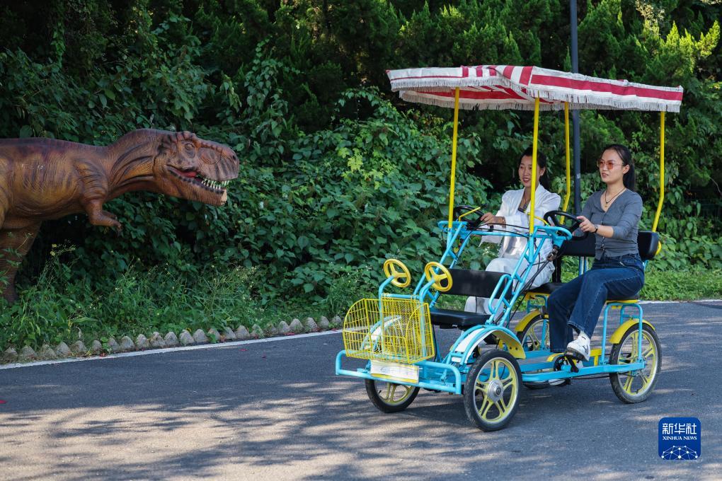 10月23日,游客在建德市楊村橋鎮嶺源樂活島休閒基地體驗自行車騎行。