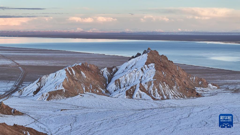 10月15日在阿爾金山國家級自然保護區拍攝的山峰和阿雅克庫木湖(無人機照片)。