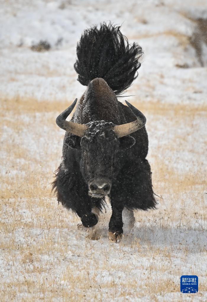 10月16日在阿爾金山國家級自然保護區拍攝的一頭髮怒的野牦牛。