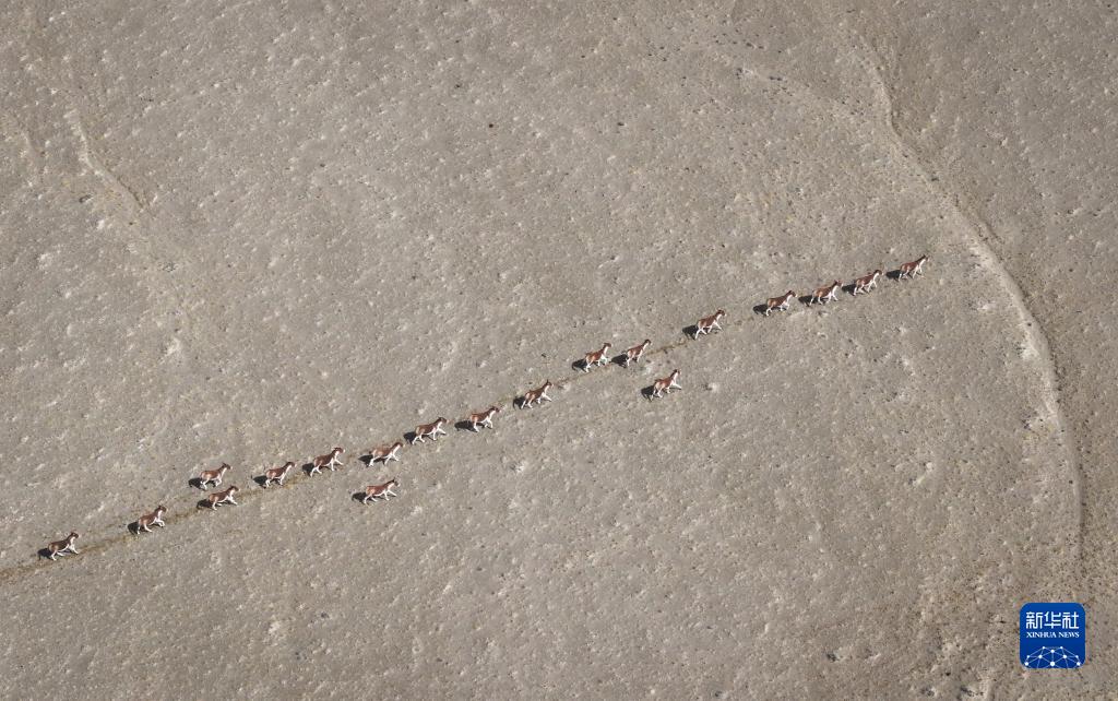 10月17日,在阿爾金山國家級自然保護區,藏野驢在草原上奔跑(無人機照片)。