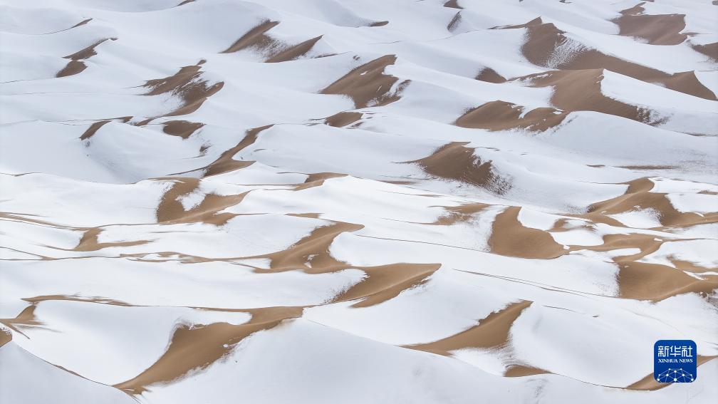 10月16日在阿爾金山國家級自然保護區拍攝的雪後庫木庫裏沙漠(無人機照片)。
