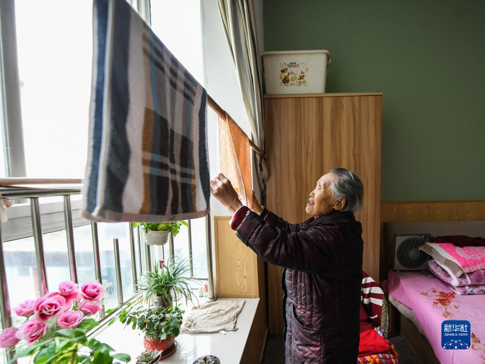 10月20日,在四川省眉山市彭山區社會福利院,趙鳳章老奶奶在整理毛巾。