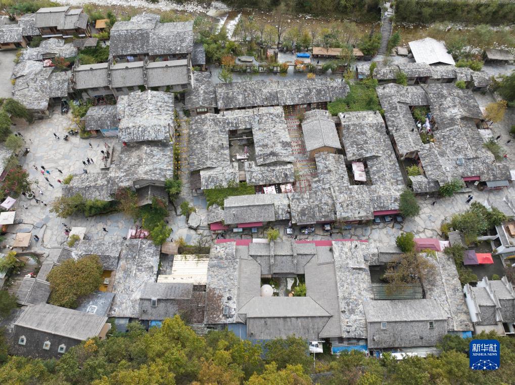 俯瞰朱家灣村終南山寨民俗文化村(10月21日攝,無人機照片)。