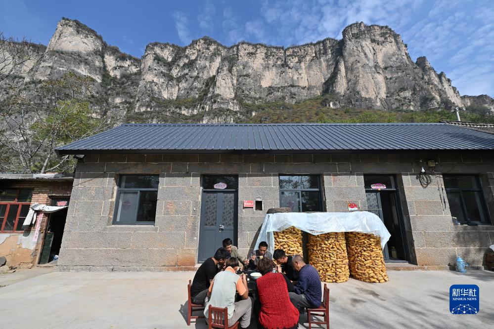 在壺關縣大峽谷鎮青龍峽村,村民們在吃午飯(10月17日攝)。