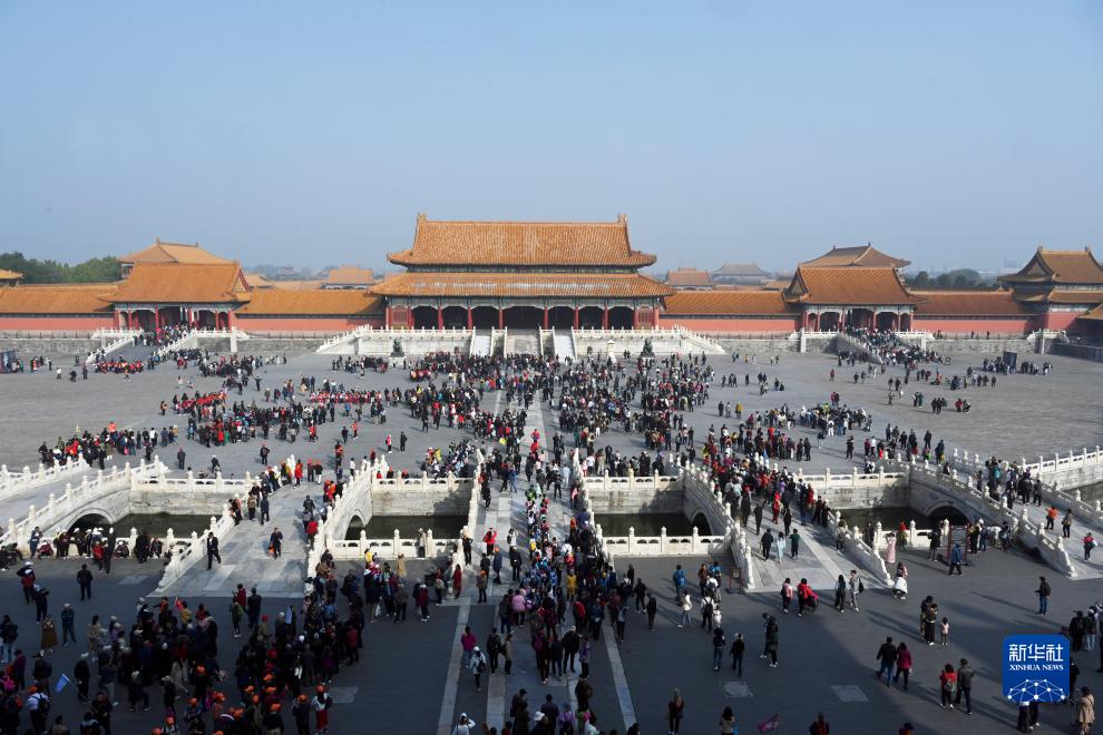 10月24日上午,觀眾在故宮太和門廣場參觀。