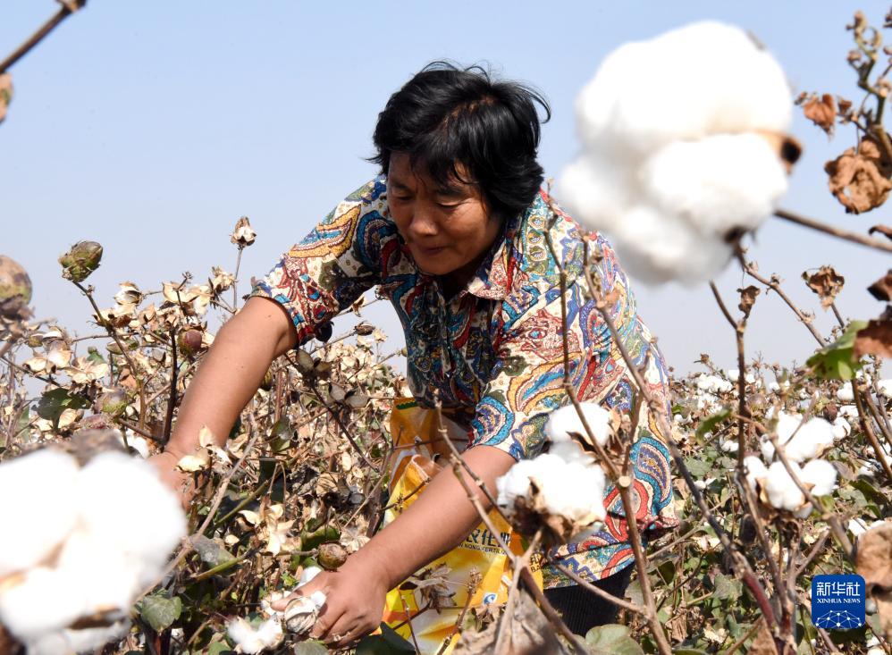 10月24日,在河北省邯鄲市成安縣北鄉義鎮辛莊村棉田內,棉農在採摘棉花。