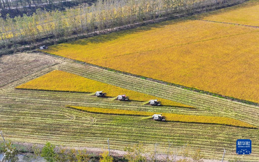 秋收時節,農民在田間忙着收穫各種作物,各地一派農忙景象。
