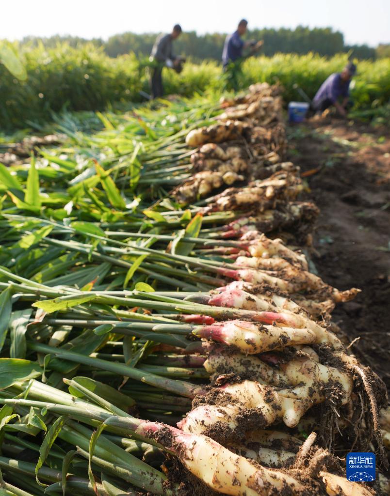 10月24日,農民在山東省鄒平市青陽鎮鍾家村一處生薑基地收穫生薑。