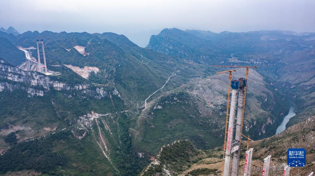 花江峽谷大橋是六安高速公路的控制性工程之一,建成後主橋橋面與谷底的北盤江距離達625米,將成為世界第一高橋。