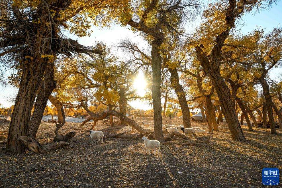 金秋時節,內蒙古自治區阿拉善盟額濟納旗的胡楊林披上“金裝”。