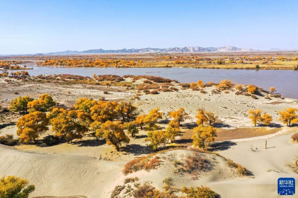 金秋時節,內蒙古自治區阿拉善盟額濟納旗的胡楊林披上“金裝”。