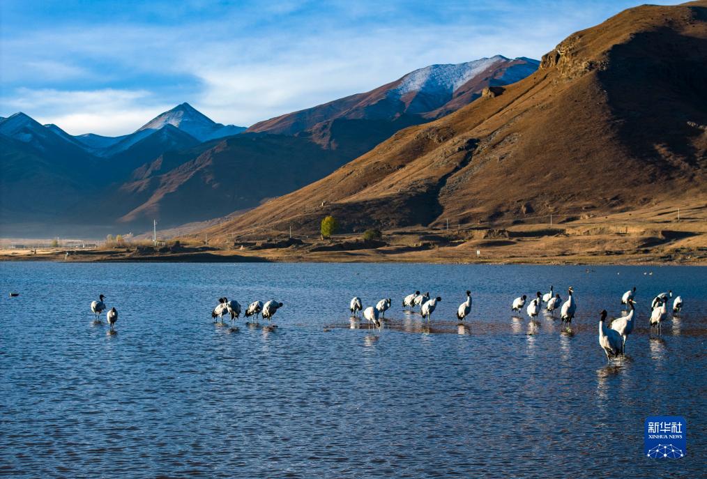 10月下旬,西藏自治區拉薩市林周縣迎來2023年第一批越冬黑頸鶴。它們將在這裡一直待到來年三四月份。黑頸鶴是國家一級保護動物,主要棲息在海拔2500米至5000米的高原、草甸、沼澤地帶。拉薩北部的林周縣平均海拔約4200米,是黑頸鶴的主要越冬地之一。