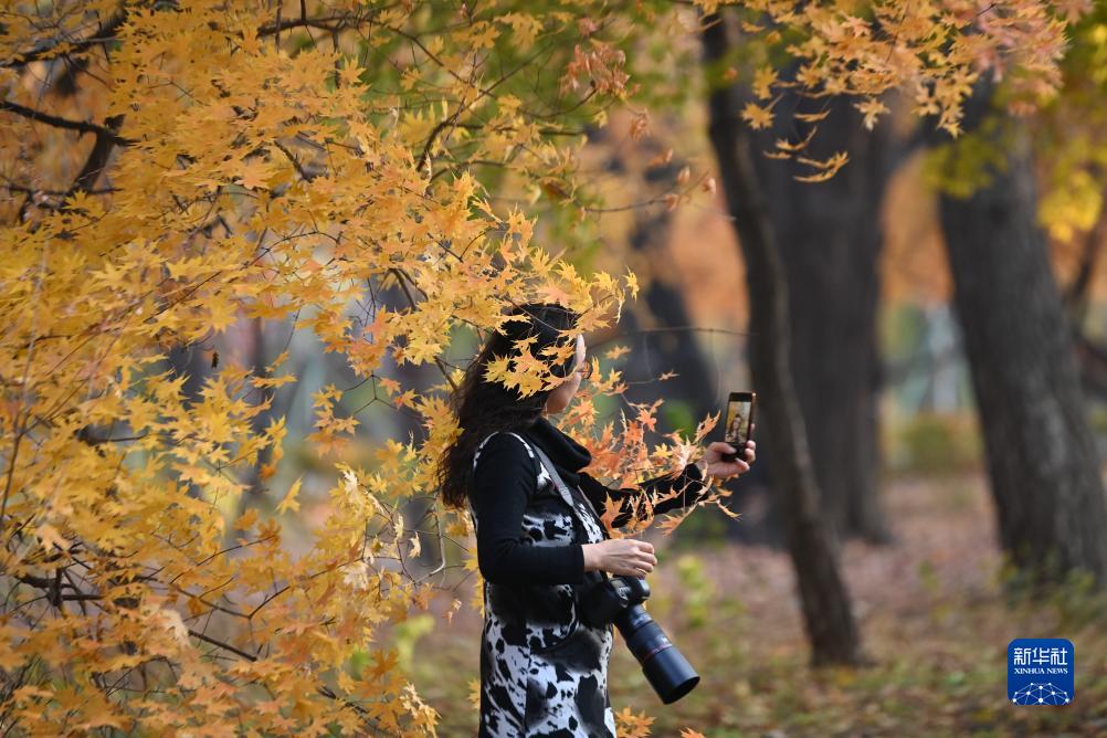 10月24日,市民在長春市南湖公園欣賞秋景。