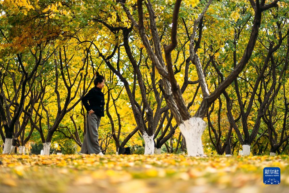 市民在長春市文化廣場欣賞秋景(10月19日攝)。
