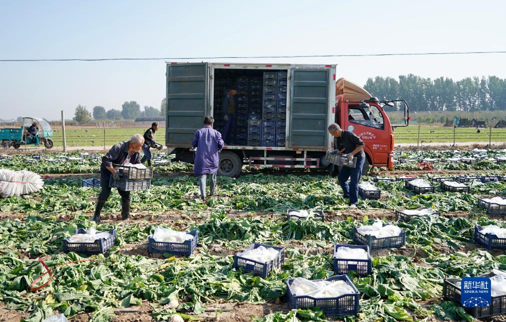 10月25日,辛集市辛集鎮辛洲蔬菜種植基地的工人在搬運蘿蔔。該基地種植的蘿蔔按訂單銷往日本。