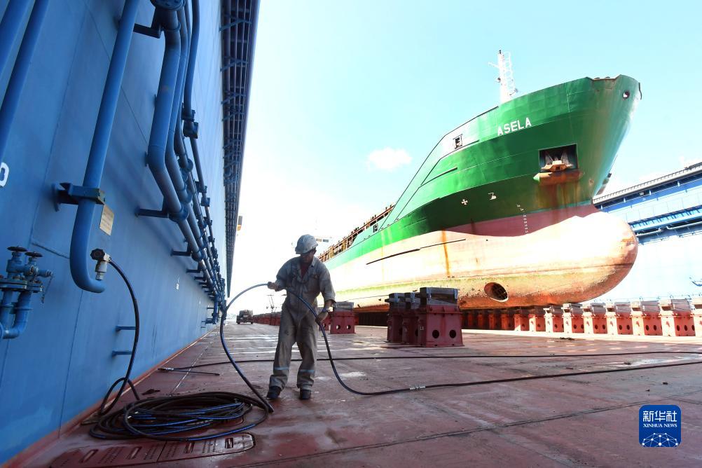 10月24日,在古巴哈瓦那港,一名工人在浮船塢甲板上工作。