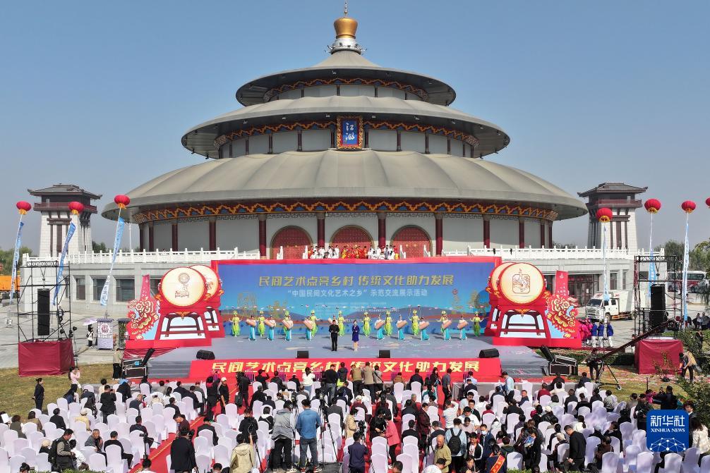 10月25日,演員在“中國民間文化藝術之鄉”示範交流展示活動現場表演節目(無人機照片)。