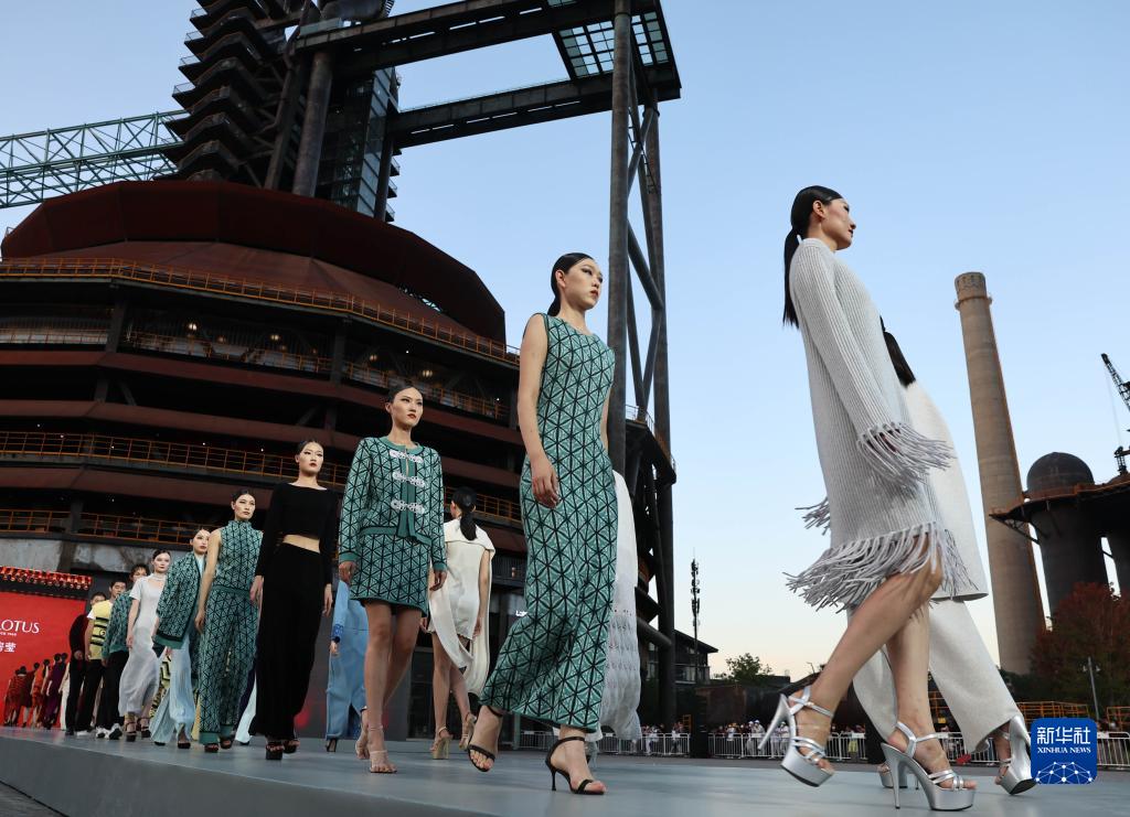 模特在北京首鋼園三高爐南廣場走秀(2022年9月1日攝)。首鋼凝結着首都的工業記憶,經過重新設計與改造,以三高爐為代表的首鋼工業地標煥發新活力,助力首都高質量發展。