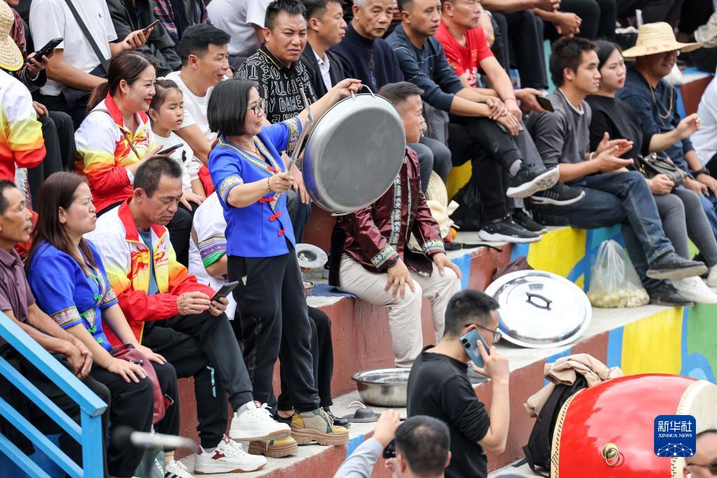 10月25日,觀眾在看&上敲鐵鍋助威。