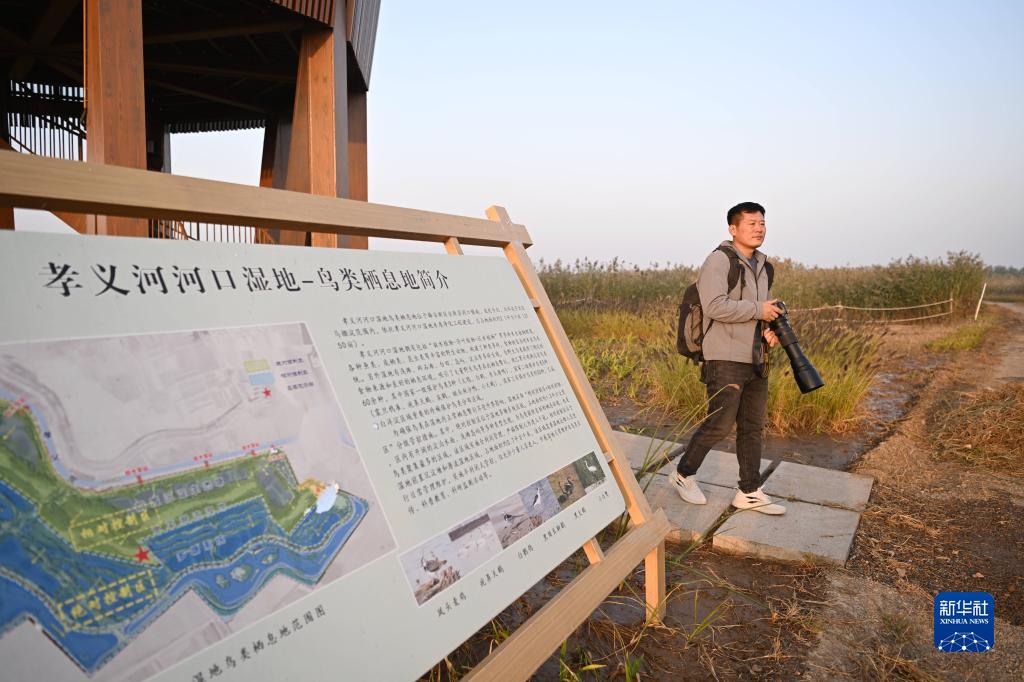 10月24日,韓戰橋在雄安新區孝義河河口濕地觀察野生鳥類。