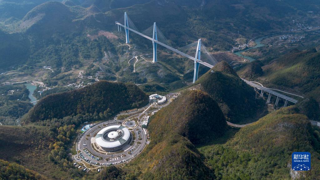這是10月25日拍攝的“天空之橋”觀光服務區和平塘特大橋(無人機照片)。