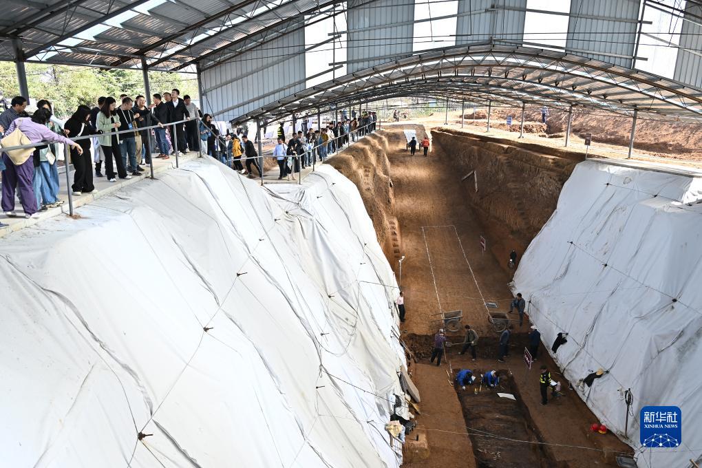 10月25日,參會者在霸陵陪葬墓發掘現場參觀考察。