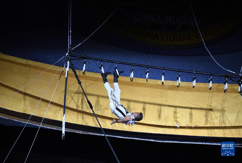 10月25日,巴西雜技演員在表演《鞦韆倒立》。