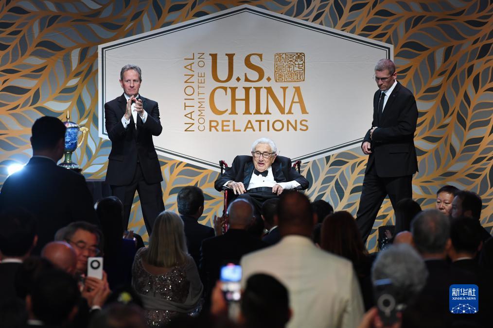 美中關係全國委員會24日在紐約舉行年度頒獎晚宴,兩國領導人向晚宴致賀信。晚宴向美國前國務卿基辛格頒獎,表彰他為中美關係發展所作的卓越貢獻。百歲高齡的基辛格在接受頒獎時,全場嘉賓報以持久熱烈掌聲。他在獲獎致辭中説,“我一生中一半時間都在為美中關係工作”,美中之間的和平與合作至關重要,符合兩國和世界的利益。基辛格呼籲美中兩國共同推動雙邊關係重回正軌,“正如我50年前所相信的那樣,我們能找到克服困難的出路”。