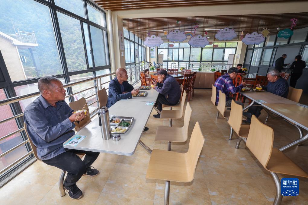 10月26日,老人們在杭州市富陽區湖源鄉居家養老服務中心就餐。