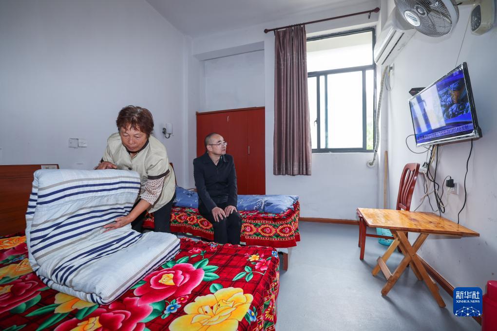 10月26日,工作人員在杭州市富陽區湖源鄉居家養老服務中心為老年人整理床舖。