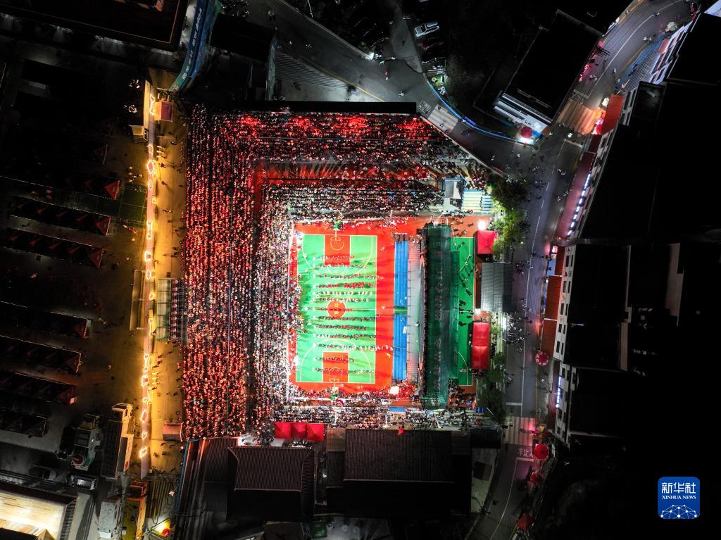 10月25日,夜幕中的&盤村籃球場(無人機照片)。