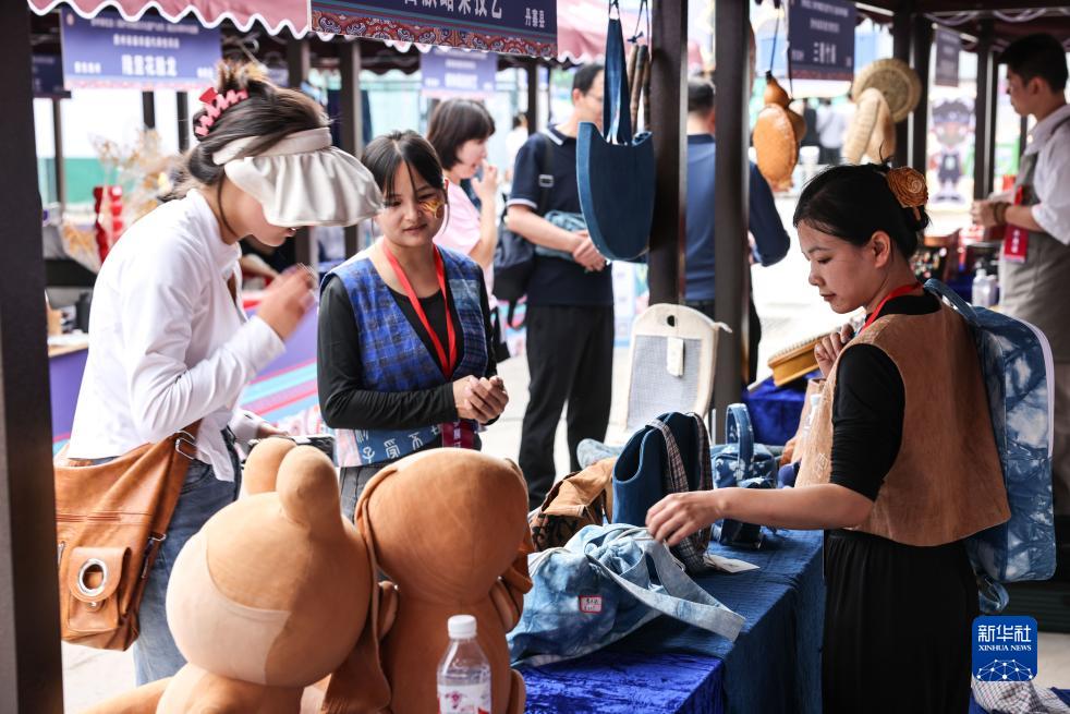 10月25日,游客在&江縣球場旁的非遺集市上選購特色産品。