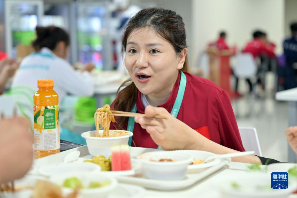 10月23日,盧冬在杭州亞殘運會運動員村吃晚飯。