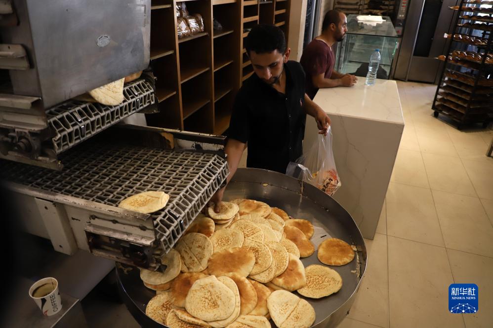 10月25日,在加沙地帶南部城市汗尤尼斯,工作人員在一家烘焙店內製作食品。