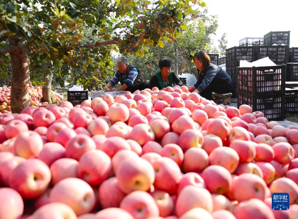 10月26日,河北順平縣南神南村果農在果園分揀採摘的蘋果。