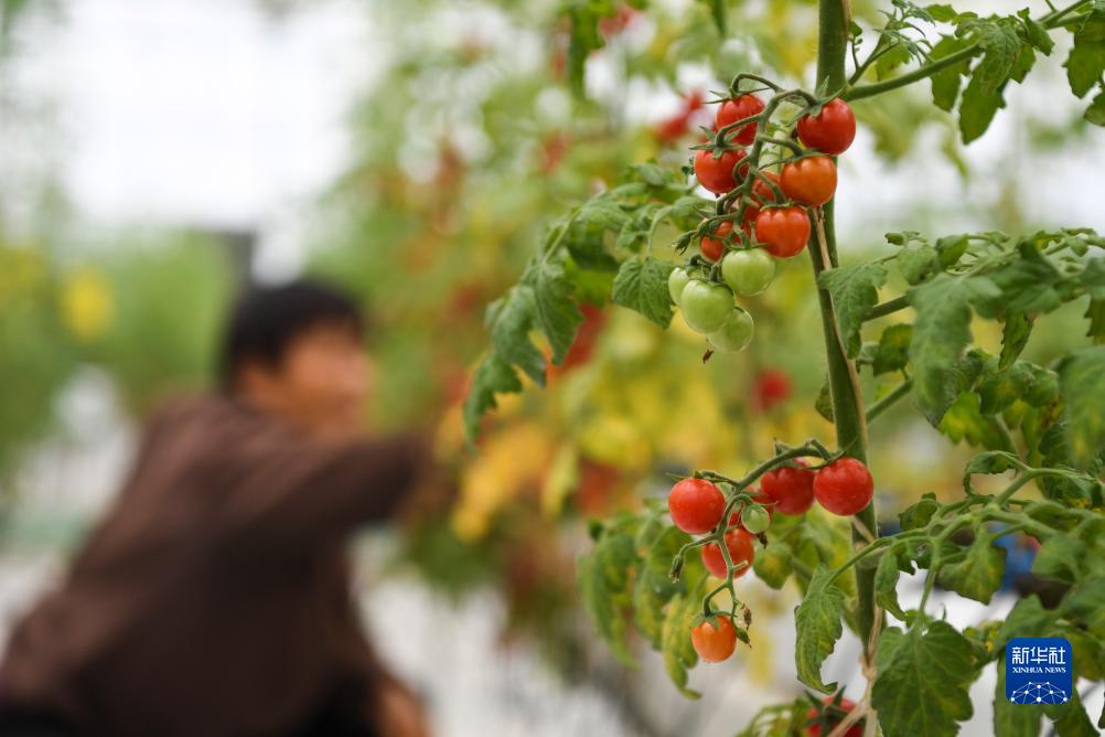 這是10月25日在魯渝(壽光)蔬菜現代産業園南門科技示範園拍攝的西紅柿。
