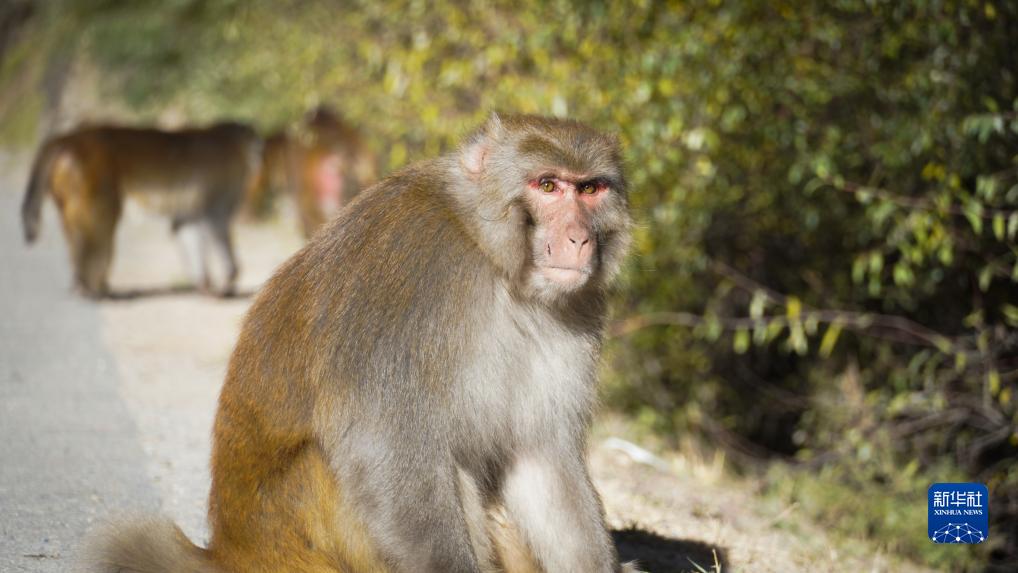 在317國道旁拍攝的野生藏獼猴(10月25日攝)。