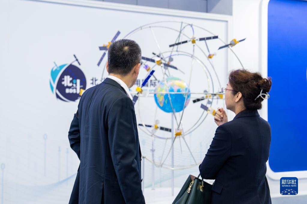 10月26日,在株洲國際會展中心,觀眾在觀看北斗系統組網模型。