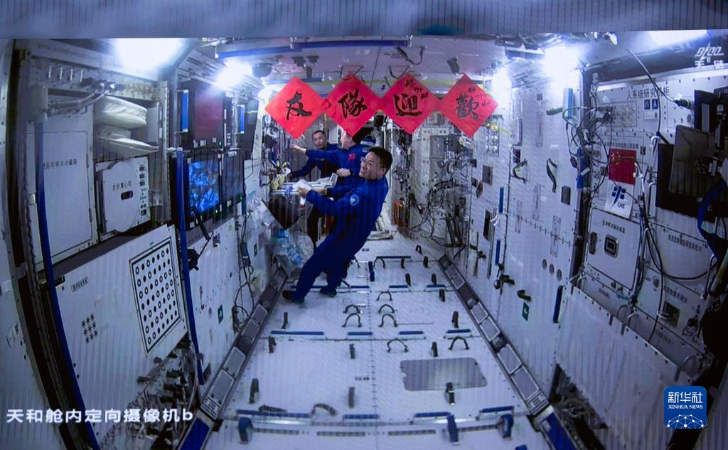 10月26日在北京航天飛行控制中心拍攝的神舟十六號乘組準備迎接新隊員。